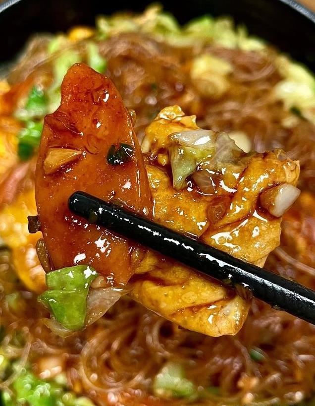包菜的脆爽搭配粉丝的Q弹嫩滑,鸡蛋鲜香美味,好吃不腻,嗦粉的快乐你们懂的。