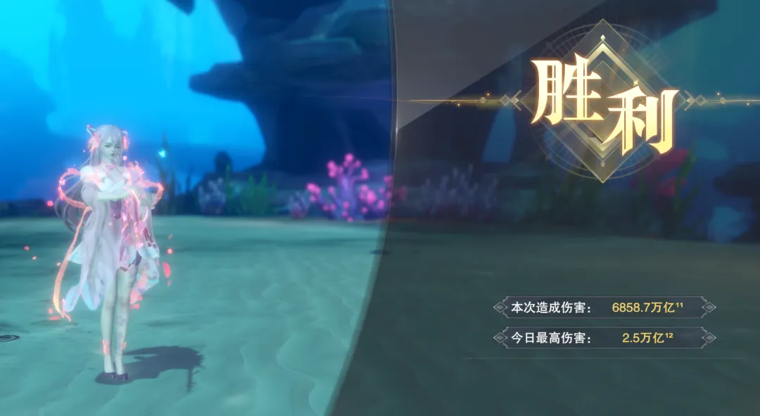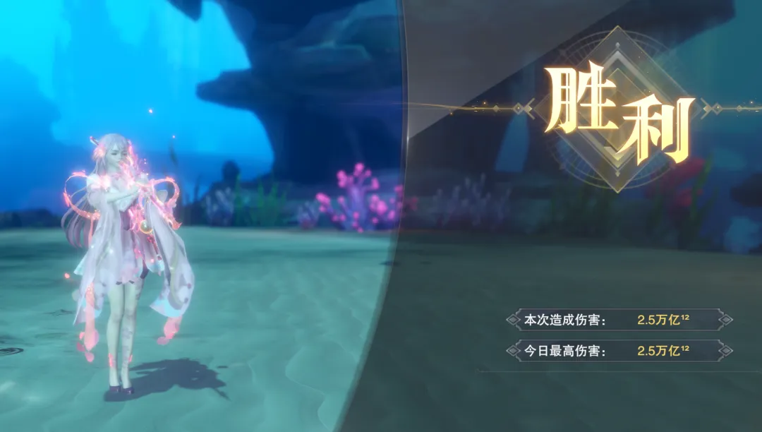而目前经过圣柱试炼副本的多次尝试(因为今天是周二,没有悬赏,所以只能暂时用圣柱试炼来做个代替),同样的阵容上红色5星半满配的SP千道流打出来的伤害约为2.5万亿¹²左右。
