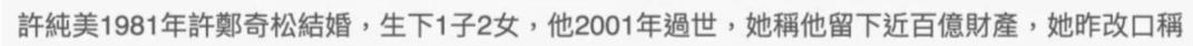 只可惜,幸福的时光总会觉得短暂,在2001年,郑奇松因癌症去世,让许纯美一度陷入绝望。