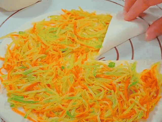 准备一根青萝卜和一根胡萝卜,用刨丝器都刨成萝卜丝,然后先+些食盐腌个几分钟(去除青萝卜的辛辣味,而且腌软后更好包制),把里面的水分腌出来后挤干水分放盆里,再+葱花、芝麻油、松茸鲜(盐可以不+因为腌制过了哦),或者自己喜欢的调味料拌匀就可以啦!
