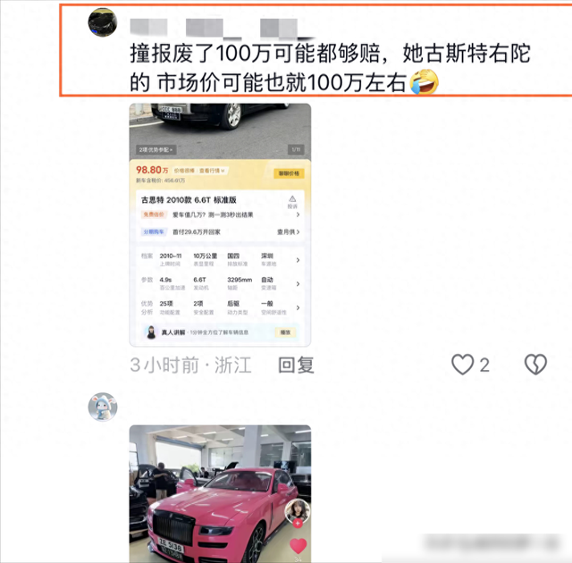 在短暂的时间内对于一件事情的态度多次变化势必令大众产生疑惑,因此网友自行猜测出背后或许有一些不为人知的秘密,但没有想到很快就有了更加劲爆的消息传出,那就是关于这辆粉色劳斯莱斯车子本身就不是豪车的事实。