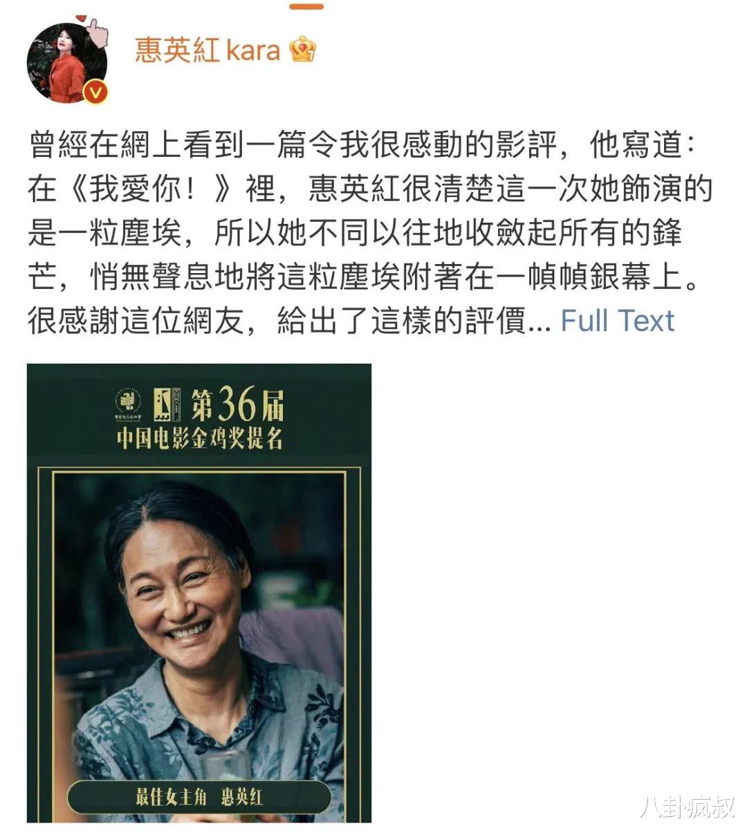 最近,金鸡奖预开奖名单公布,恭喜去年的新晋“影后”惠英红又获得提名~
