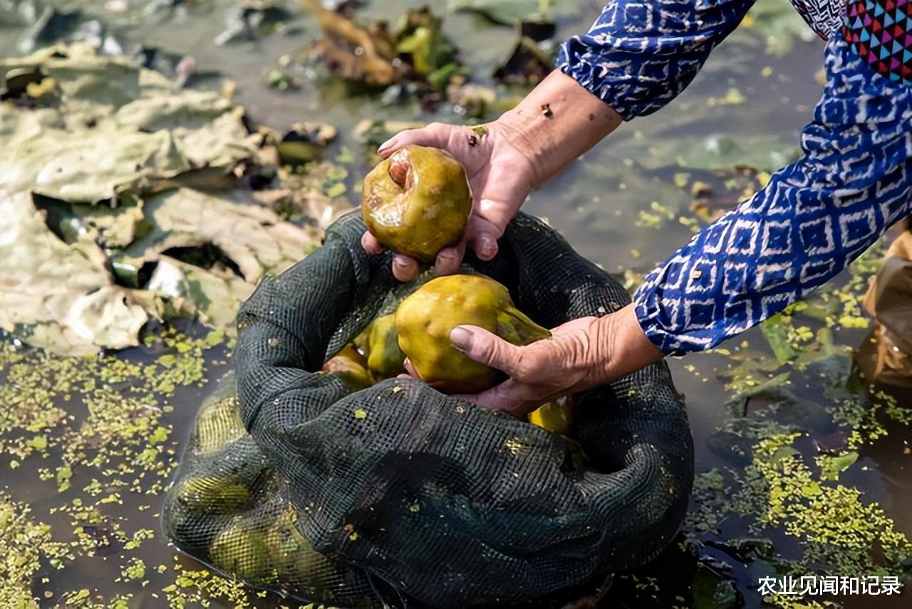 生产上由于面积大,为了便于用工管理,往往均匀安排采收间隔期,如隔5-7天轮转一次。据观察,采收旺季,从开花至采收,“大旦”需20天,“剥坯”需25天,“老粒”需30天。今年我省多地因夏季高温,造成了芡实一定程度的减产,从节约采收人工的角度,轮转的周期应根据实际情况适当适当延长。