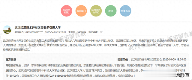 官方回复:非常感谢您对武汉经开区发展的关心。武汉经开区已招引华中科技大学军山校区、武汉理工大学大“三院”落户我区,后续将继续加大高校招引力度,争取更多高校落户经开区。