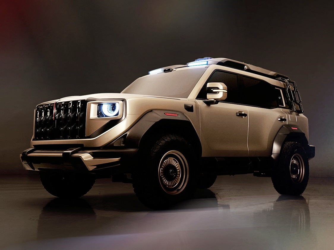预计拥有18500牛米的强大扭矩和4秒级的零百加速性能(具体需以官方最终参数为准)。这款硬派越野车还采用了非承载式车身和三把差速锁。