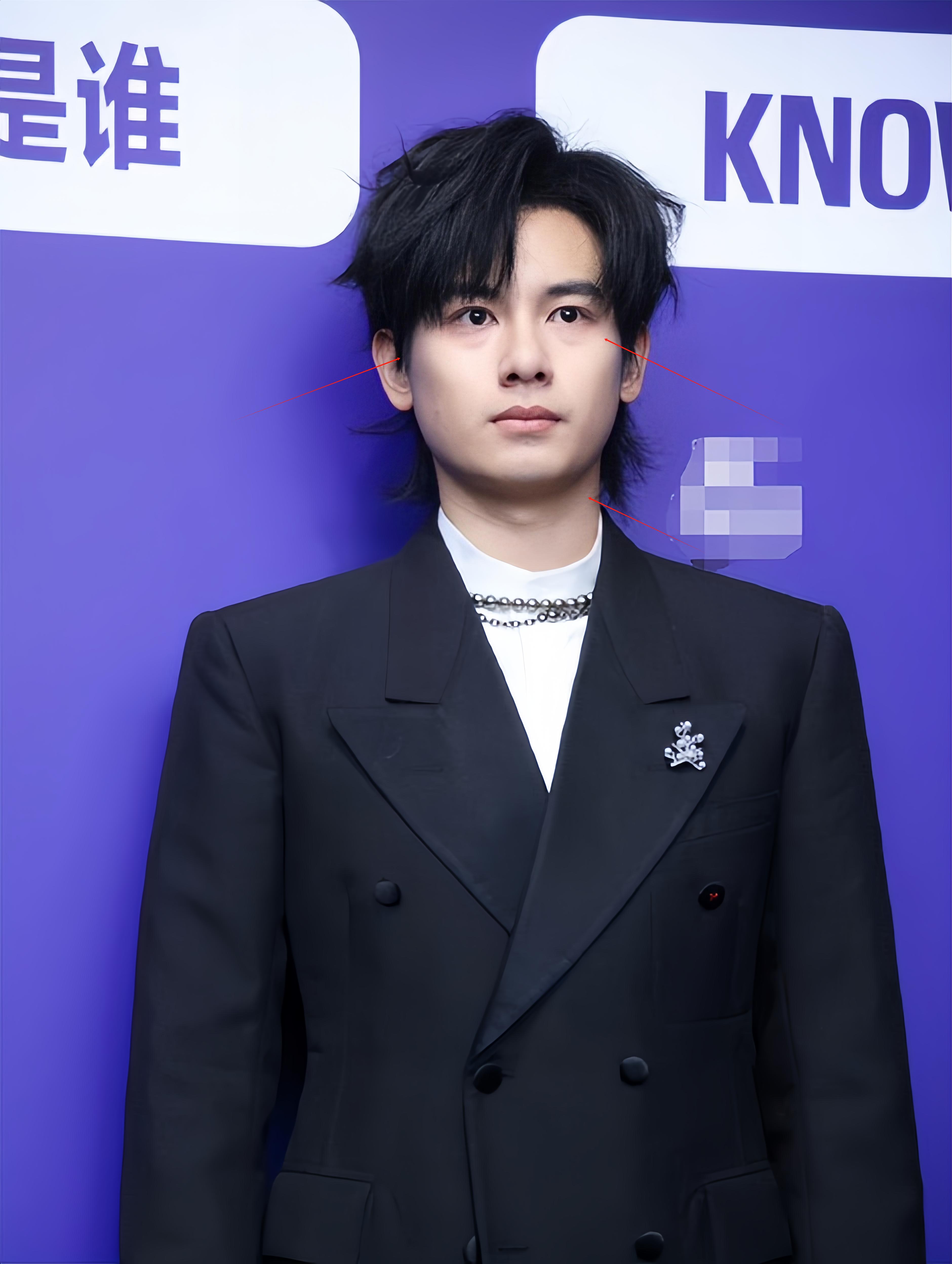 在远景镜头下梳着小狼尾的胡先煦安静的站在背景墙前,好似童话中的白马王子走进了现实,简直不要太帅了。