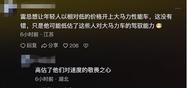 显然,这起事件“速度”仍是网友们讨论的一个核心,有人认为,su7ultra马力太大,一般人不适合开,太快容易出问题,反观还有网友认为,关键在于驾驶员,道路都有速度限制,车能开快不是让人去开快。