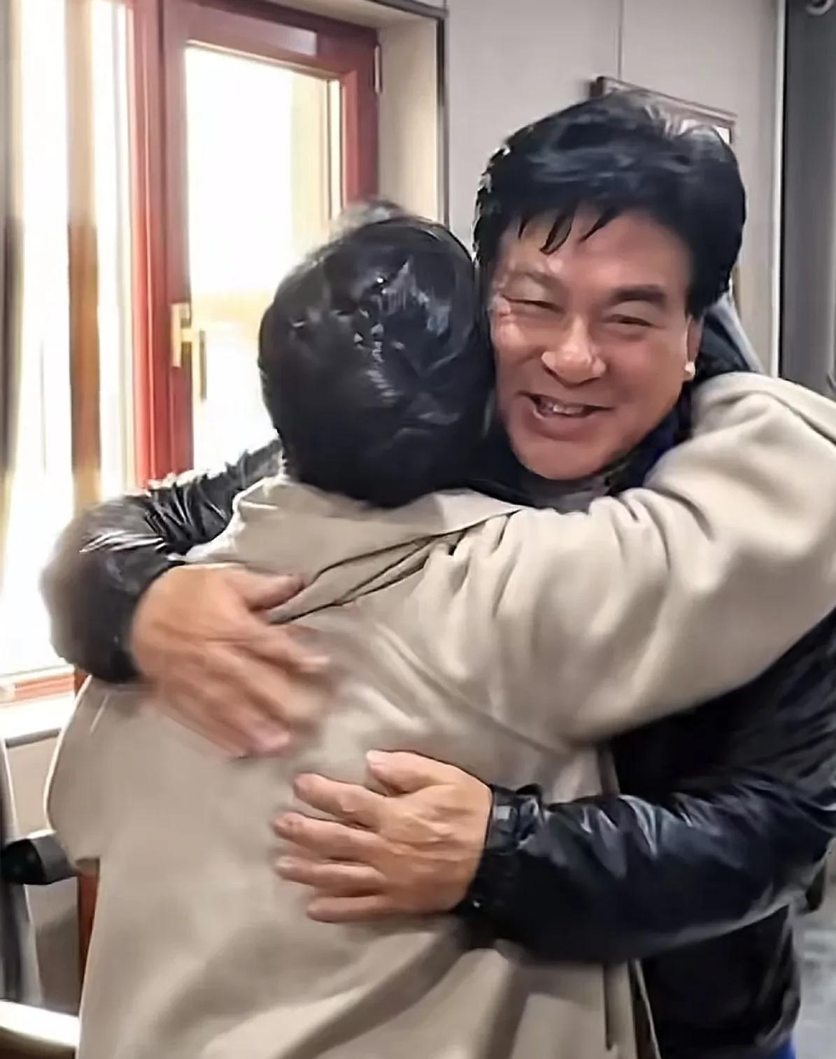 身着黑色棉服的陈佩斯甫一进门,便径直走向正在打牌的朱时茂,未及脱去外套便伸手揉搓老友的头顶,继而轻抚其面颊,动作自然得如同少年玩闹。