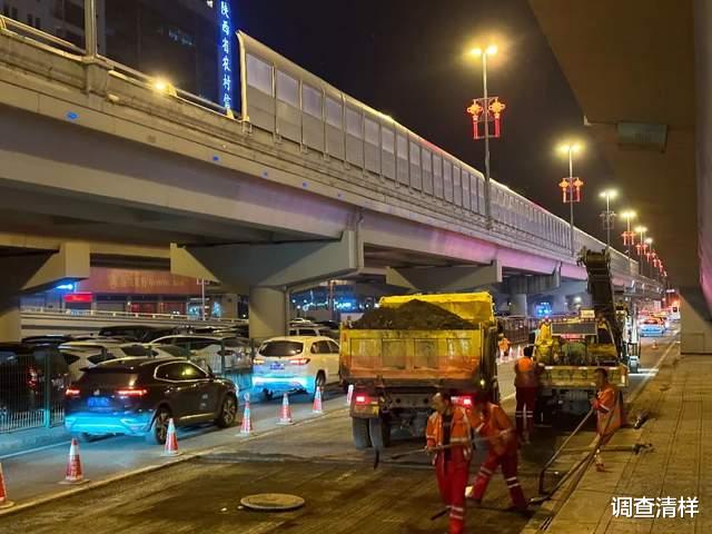 晚间,又赶上西二环土门商厦转盘处查酒驾,就在查酒驾的路段,市政人员还同时在翻新道路。