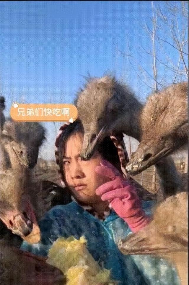 有一天,她的孙子突发奇想,把她喂鸵鸟的场景拍成了短视频。