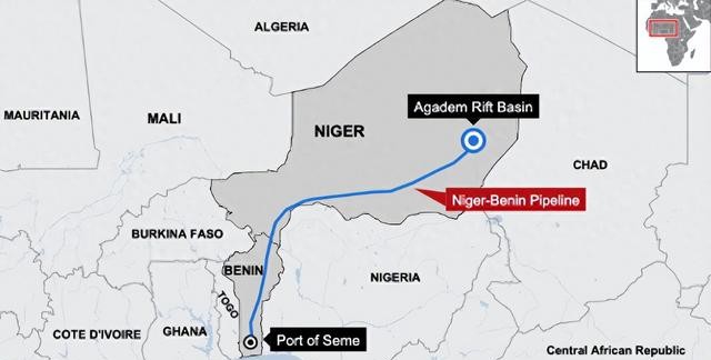 在2011年的时候还启动了油田投产项目,紧接着中石油又在2019年全面启动并建成了尼日尔全长2000公里的跨国输油管道,随着2024的时候年首船原油从贝宁港口出海,尼日尔今后的90%的石油出口都依赖着这条“能源动脉”。