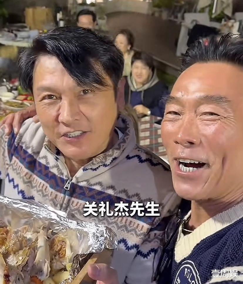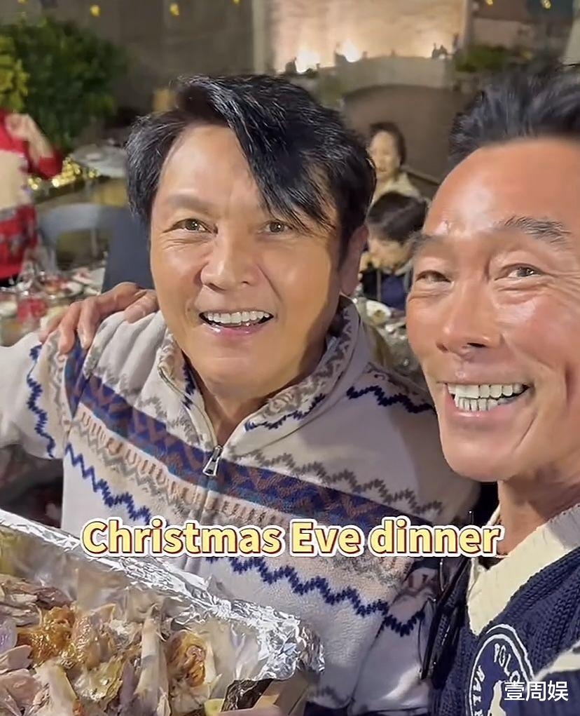 这时,关礼杰端着火鸡跟郑浩南一起同框,可见兄弟俩私下的关系相当不错,而且关礼杰还是那么帅气,虽然眼角的皱纹明显,但并没有衰老的迹象,其实他要比郑浩南大2岁,似乎看上去要比郑浩南年轻许多。