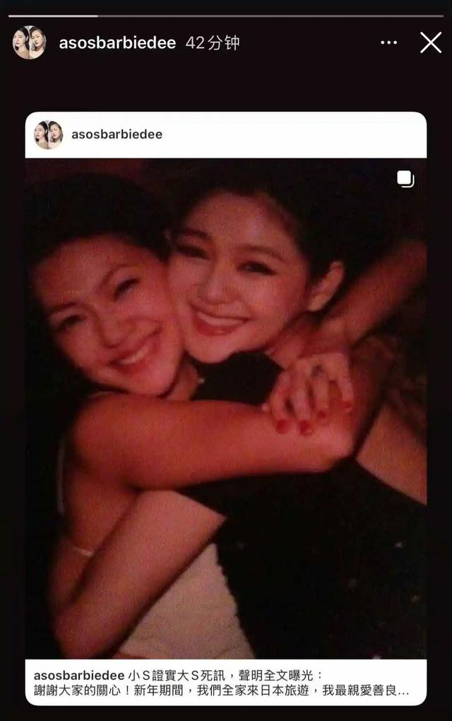 随后小 S 发文称:谢谢大家的关心!新年期间,我们全家来日本旅游,我最亲爱善良的姊姊熙媛,因得了流感并发肺炎,不幸地离开了我们。感恩这辈子能成为她的姊妹,彼此照顾、相伴,我会永远感激她、怀念她!珊~一路好走!永远爱你 together remember forever