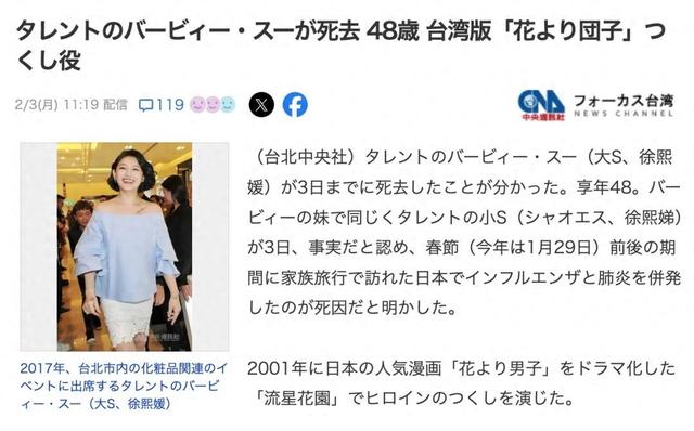 从今天早上开始,网络上就出现“台湾有位大明星过世”的消息,后来有人透露是大 S,小编看到第一感觉认为是假新闻,当看到群里有人讨论时,也制止对方希望沉默对应,让子弹再飞一会。