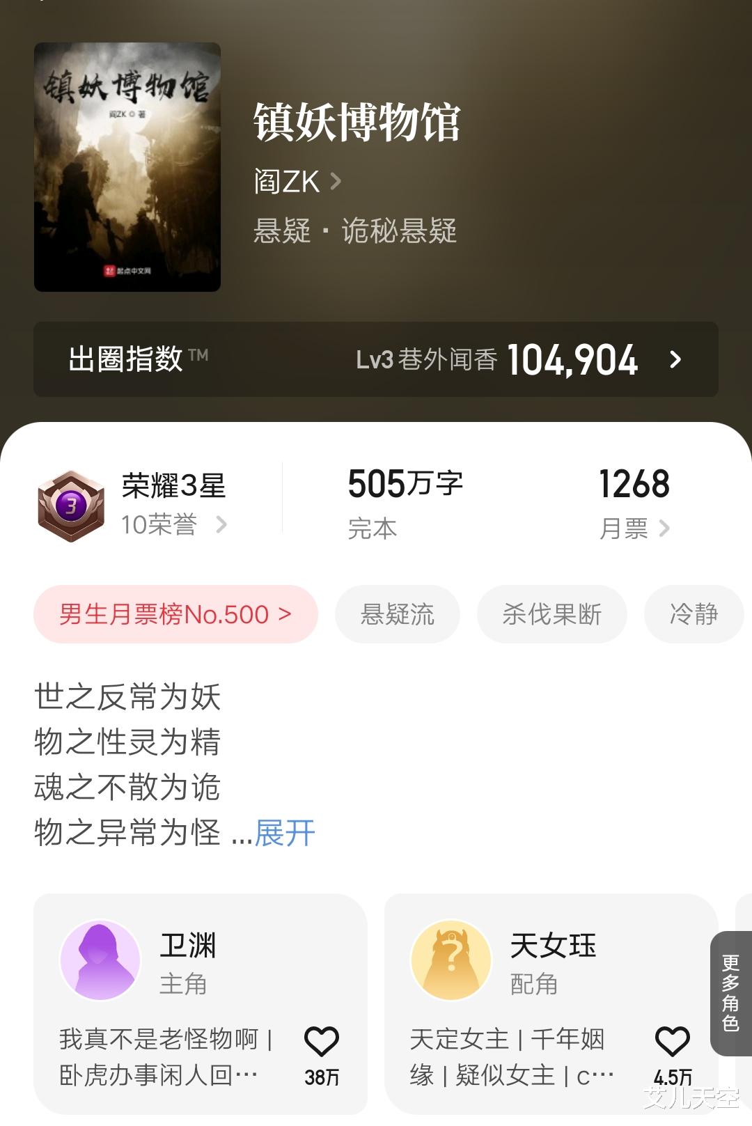 不过当时我对起点单独安排新书活动,还是有点疑问的,毕竟阎ZK在新晋大神里也并不显得突出。上本小说《镇妖博物馆》也就是他的封神作,还有点高开低走的样子。