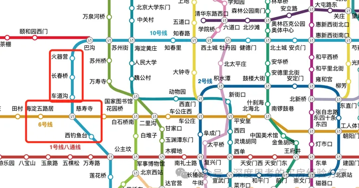 片区内的地铁站主要是10号线火器营、长春桥、车道沟、西钓鱼台、慈寿寺站,还有6号线的海淀五路居站。未来这块也有12号线的站点。