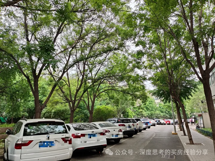 小区里面都是隔开的单独的几个小院的,整体环境还不错,也干净,人车不分流,都是地上停车位,车位配比1:0.6,停车紧张;楼间距很宽,采光也很好。
