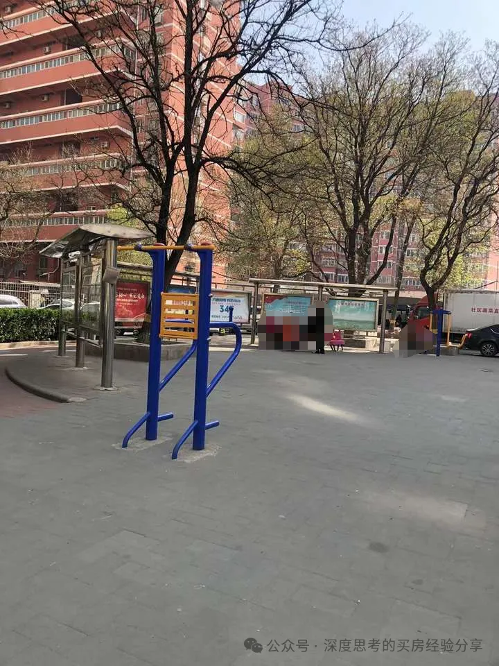 小区里面有个广场,有健身设施和长椅,平时可以锻炼身体,在此休憩。