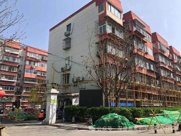 小区正在做老旧小区改造,有改造完的,改造的非常彻底,厨房和厕所的下水都换了,窗户也换了,小区里的路也都修了,改造完以后还是很不错的。下面这个是正在搭架子要改造的,其实没改造前也不算太旧。