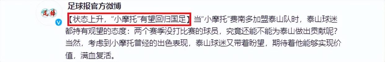 不仅如此,据知情媒体透露,国足主帅扬科维奇已经关注到费南多,后者大概率重返国足。要知道,费南多过往只是参加过训练,但从未代表国足在正式比赛中出场,因而若能回归,30岁的“小摩托”还是令外界充满期待。继王大雷、刘洋、孙国文、陈蒲、刘彬彬后,费南多将成为泰山第6位国脚。