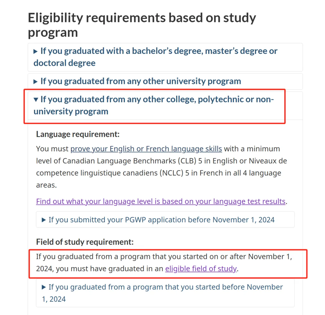 从现在起,移民局明确规定:无论毕业院校是大学(University)还是学院(College),只要获得的是本科学士学位(Bachelor Degree),均可申请PGWP,并且不受专业限制。