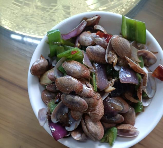 第三道菜是炒花甲,广东这边海鲜多,花甲根本不值钱,但胜在新鲜,简单配上洋葱青椒一起爆炒,还加了干辣椒提味,炒出来的肉质肥美而Q弹,吃起来特别鲜美,一口一个嘬着特别香,很是开胃。