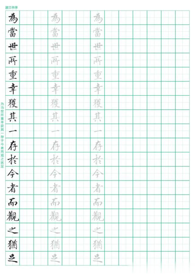 硬笔临古|褚遂良《跋兰亭序》田字格字帖