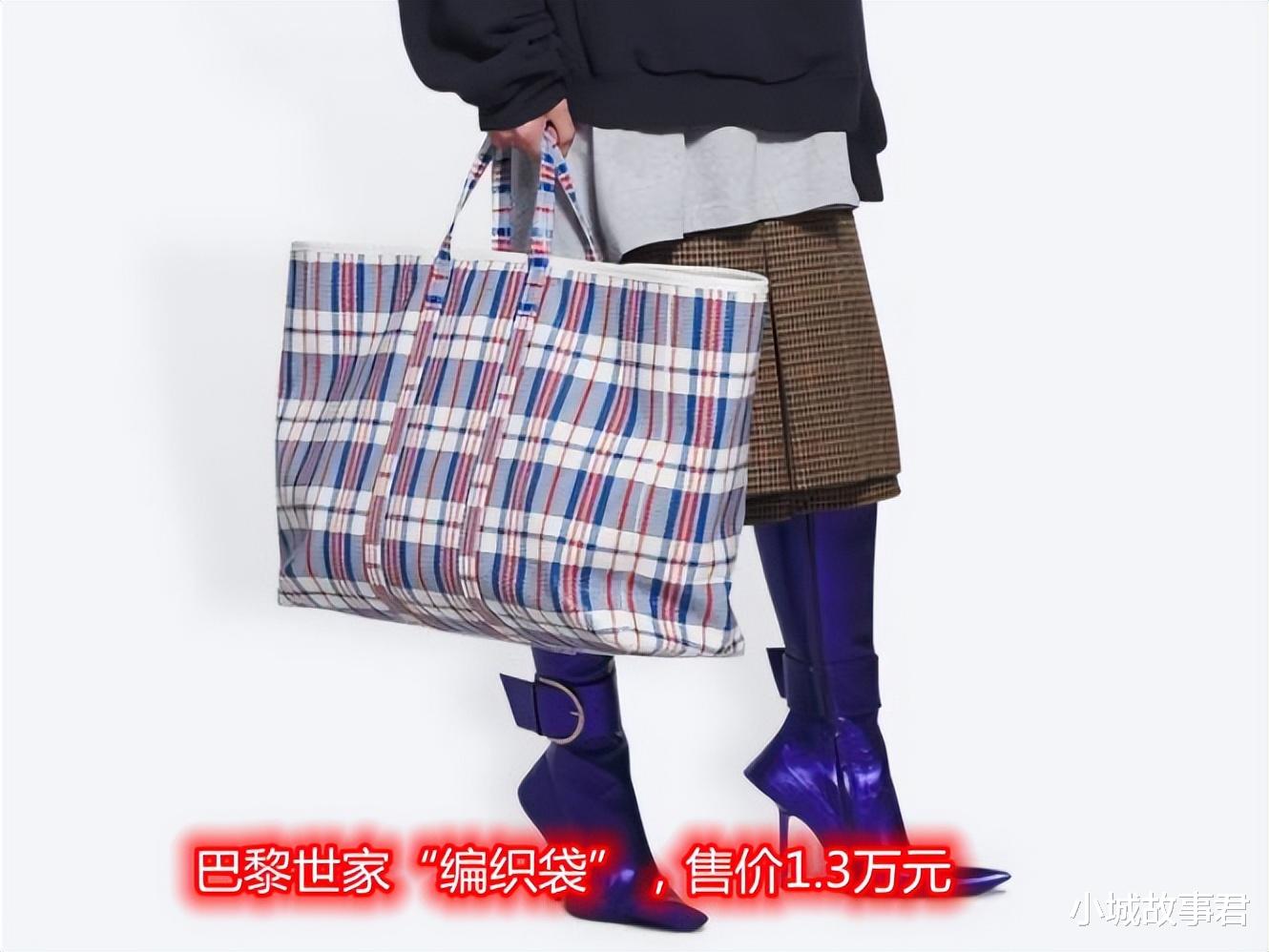 而2021年冬季,巴黎世家一款售价约为1.3万人民币的拎包,其款式对于国人来说更是再熟悉不过了,几乎是随处可见的红白蓝编织袋的翻版。拎上一只这样的牛皮“编织袋”,行走在春运的队伍里,完全没有什么违和感。