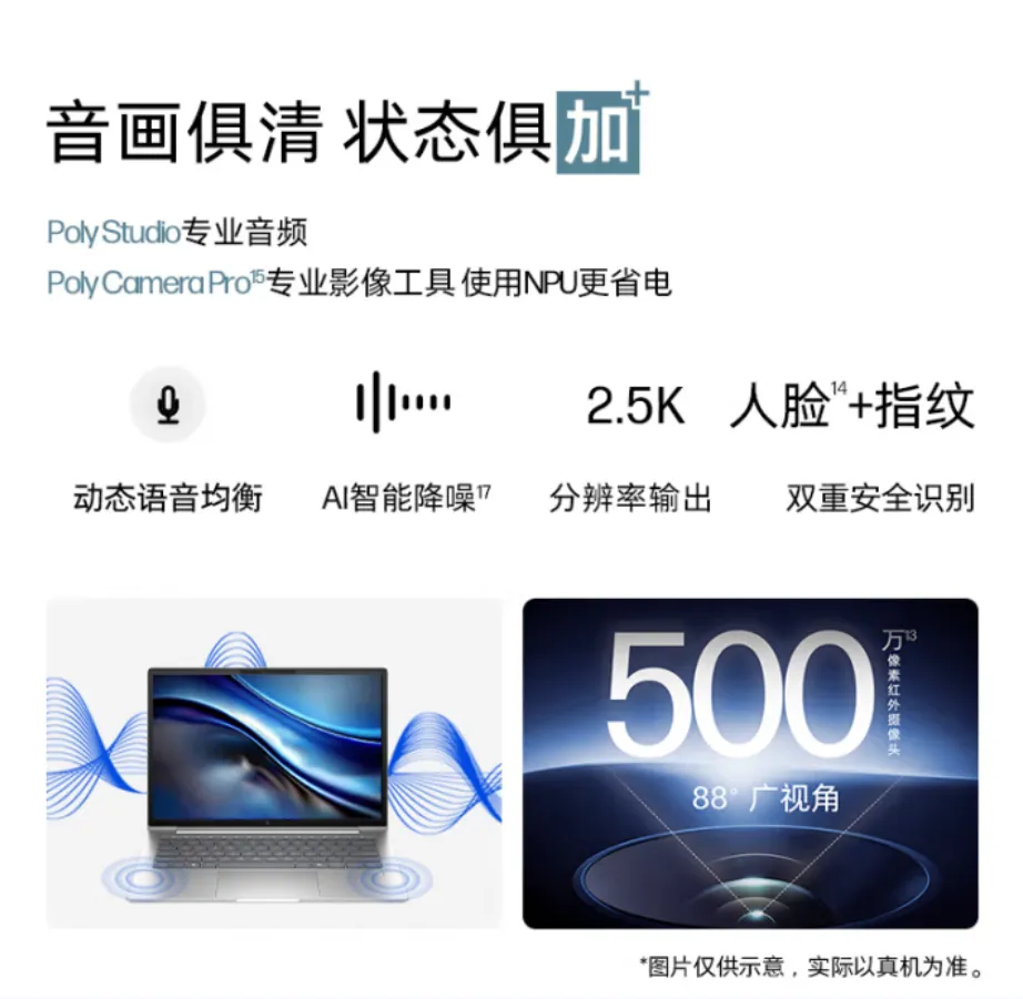 首发的9款战66 +都标配500万像素摄像头,同时支持人脸识别和指纹识别。摄像头在AI技术的加持下,支持自动取景,背景替换,背景模糊和图像调节等功能,可以带来更出色的视讯会议体验。