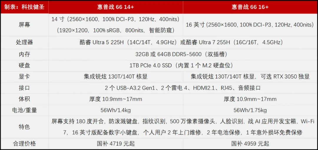 或是100% sRGB高色域+60Hz刷新率+800nit+智能防窥的FHD高亮屏,后者无惧户外阳光,可一键开启或关闭防窥功能,最大限度保护商企用户的隐私。战66 14+还可选32GB或64GB内存,国补后的价格从4719元到6159元不等。