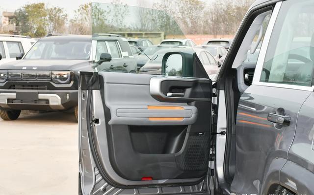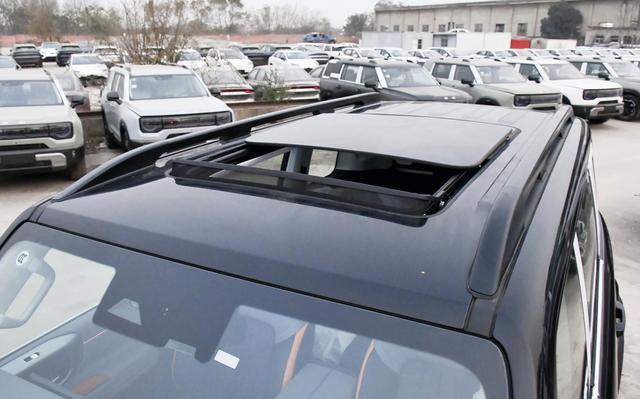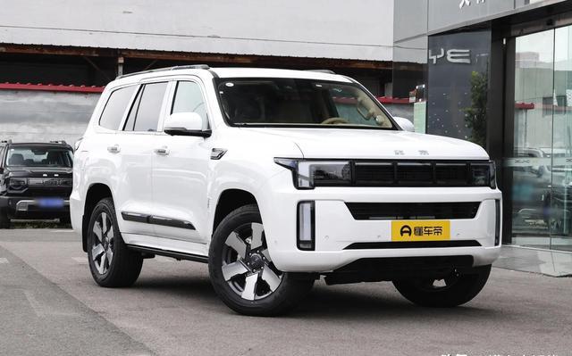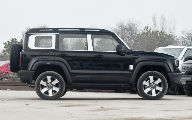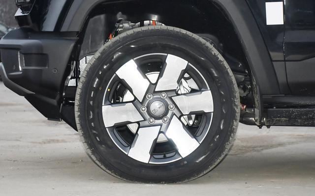 我们还实地拍摄了北京越野BJ40增程高配版——魔核电驱进阶版,这款车主要在经销商处展示。外观上,它大体保留了北京BJ40燃油版的设计,提供了海风蓝、极夜黑、雪域白和未来灰四种颜色选择。与燃油版不同的是,这款增程版配备了全新的20英寸六辐铝合金轮辋,采用了平面亮面切削工艺,设计风格与BJ60雷霆版的轮辋相仿。