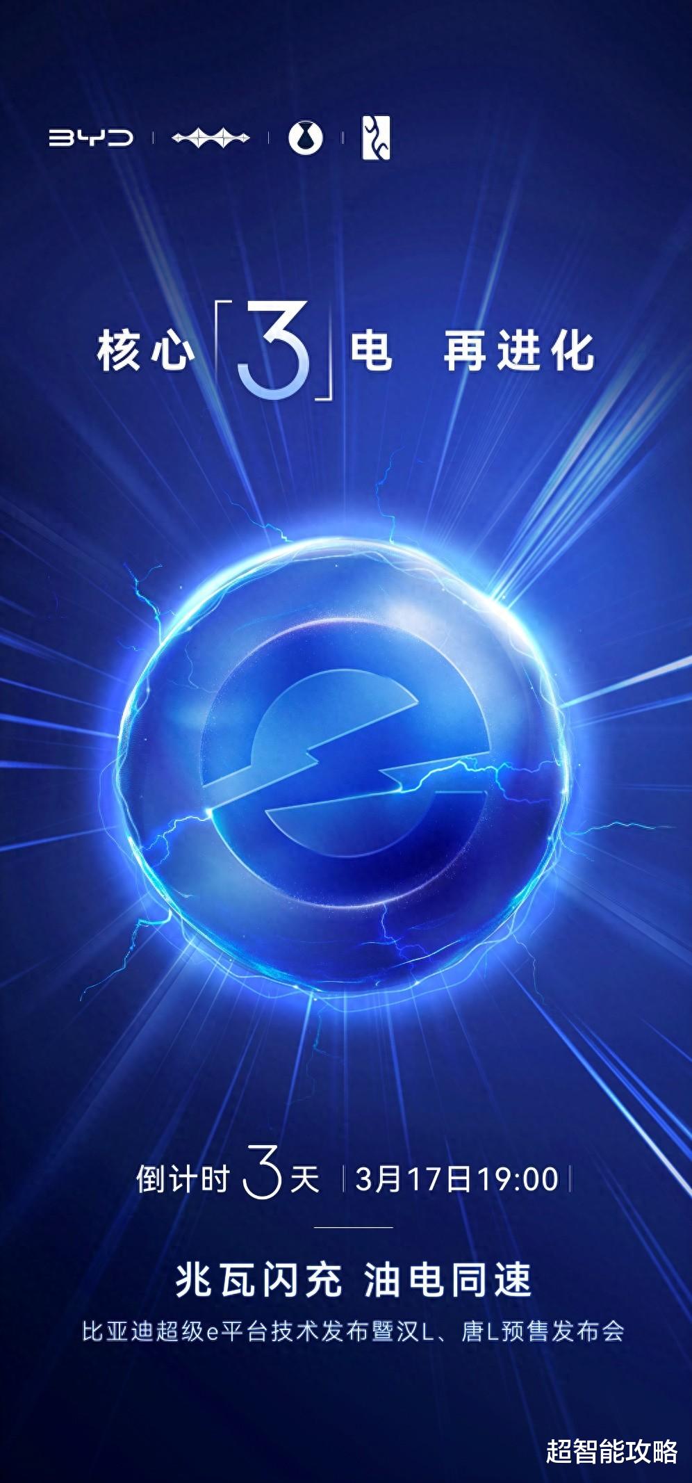 比亚迪又要放大招?前面发布全民智驾和灵鸢车载无人机系统就已经引爆行情,股价直接强势涨停,现在又开始预告3月17日发布会的大招了,这次发布会的口号特别响亮——“兆瓦闪充,油电同速”,看样子即将发布的超级e平台技术应该是要解决新能源车充电速度慢的问题。