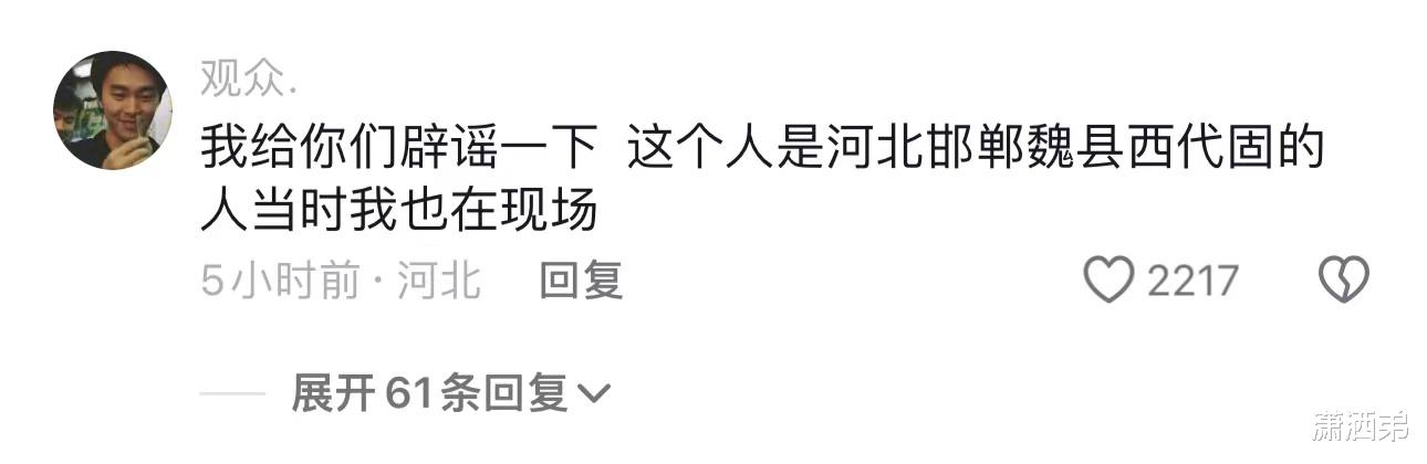 并且评论区也有知情人士透露,那个男子是河北邯郸魏县西代固的人,并表示当时他也在现场。所以在这也是劝喜欢带节奏,喜欢地域黑或者各种黑的“键盘侠”们,网络不是法外之地,人还是要走正道。