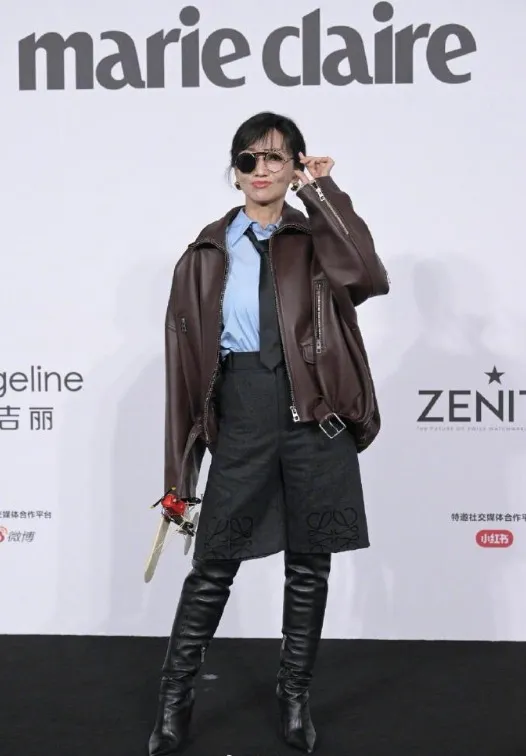赵雅芝在镜头前各种酷飒pose凹不停,可别说,平时习惯了她的仙气飘飘风格,突然换成了这种酷飒look,确实挺亮眼的。