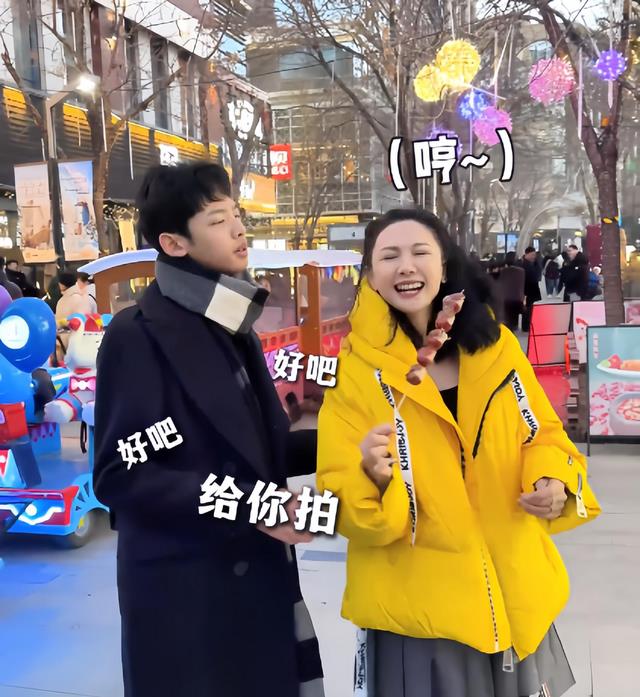在零下五度的北京街头,程莉莎身着的鹅黄色羽绒服与灰色短裙的混搭造型,恰似亲子关系中的隐喻符号。