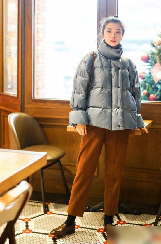 如果非要穿短款羽绒服就要选择九分裤进行替代,有着九分裤的衬托可以将腰部线条拉高,从视觉来看可以使腿部线条看起来更为修长,这样就会突显我们的优雅气质。