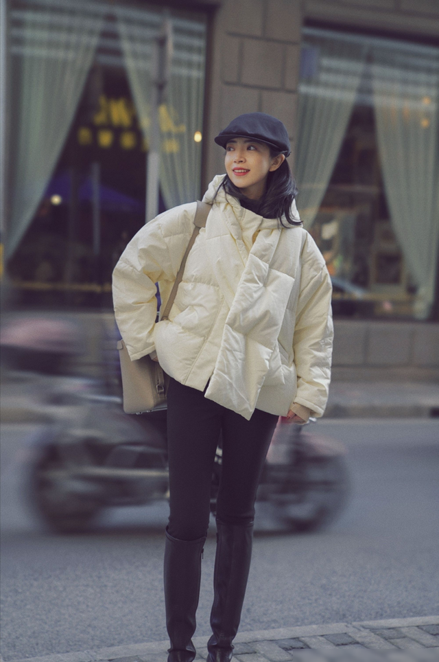 面包型羽绒服也是它们最好的搭档,两者相加,成为冬日中一道亮丽的风景线。