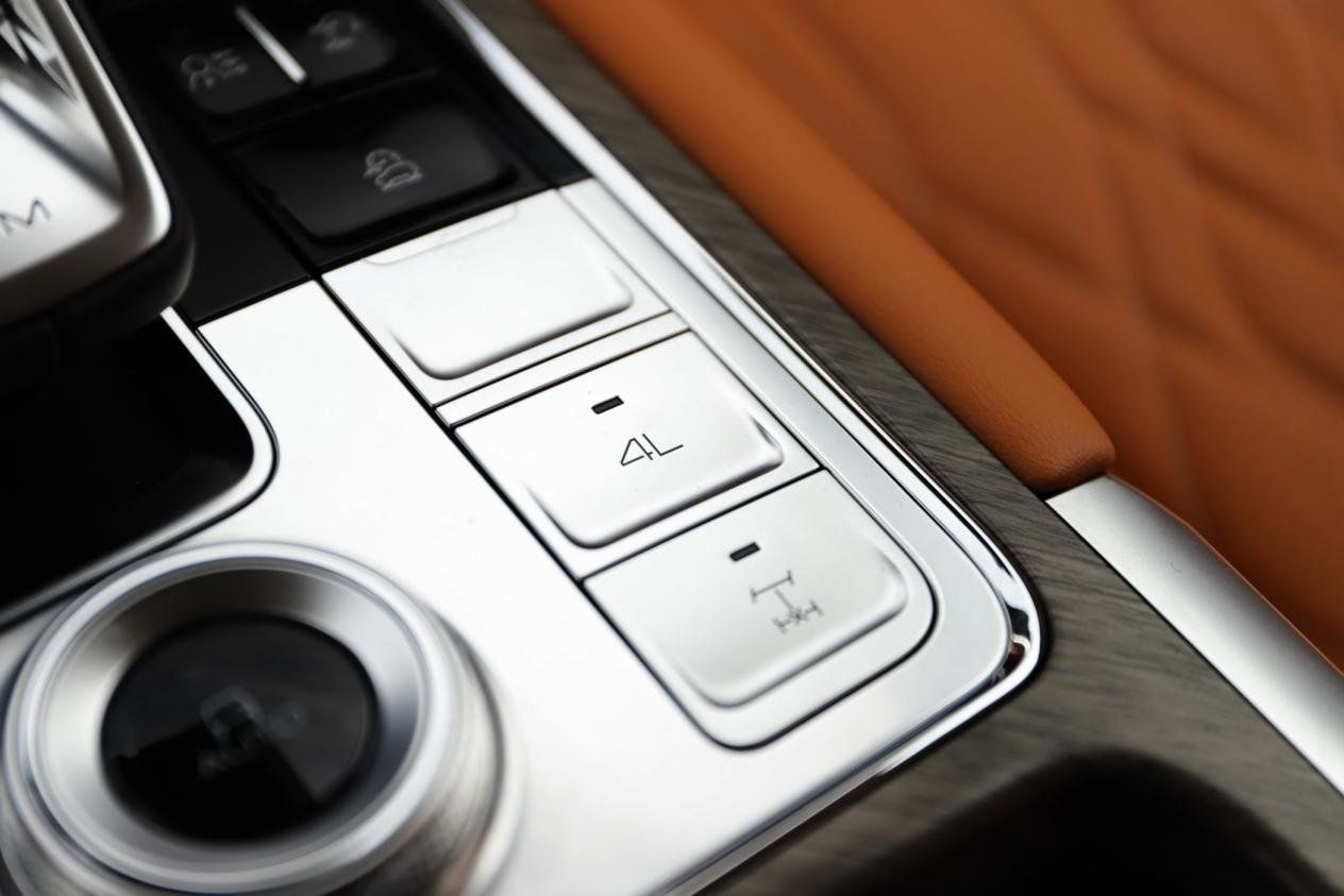 越野作为坦克品牌的一大标签,即便是主打豪华的坦克500,对越野能力的传承也是不能缺少的。坦克500底盘由于采用了非承载式车身结构,悬架则是前双叉臂+后整体桥悬挂的结构;再加上一套适时四驱系统,这套系统能够在两驱(2H)、智能四驱(AWD)、高速四驱(4H)、低速四驱(4L)间切换,配合它29.6°的接近角、24°的离去角,最小离地间隙224mm,能够满足不同的路况驾驶需求。