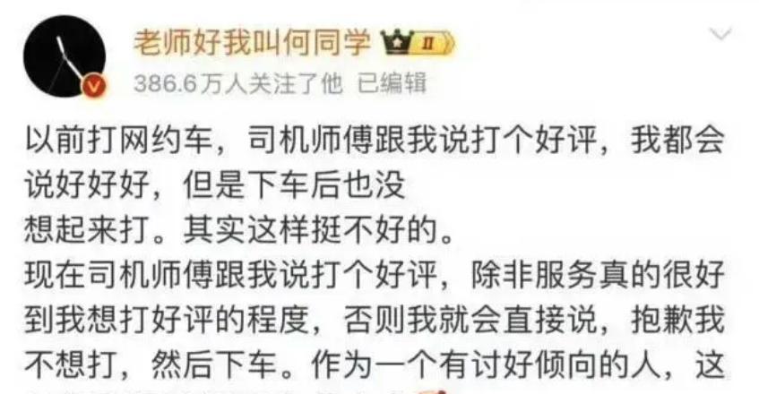 这一事件之所以引发广泛讨论,不仅源于何同学的知名度,更因为其背后映射出当代社会对服务与评价关系的深刻思考。在我们日常生活中,网约车、外卖等服务行业正在兴起,而其中的“好评”机制则成为了服务者与消费者之间重要的互动方式。然而,当这种机制被过分强调,甚至演变成一种潜在的压力时,社会就需要对这一现象进行反思。