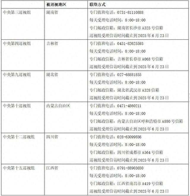 已进驻中央巡视组联络方式: