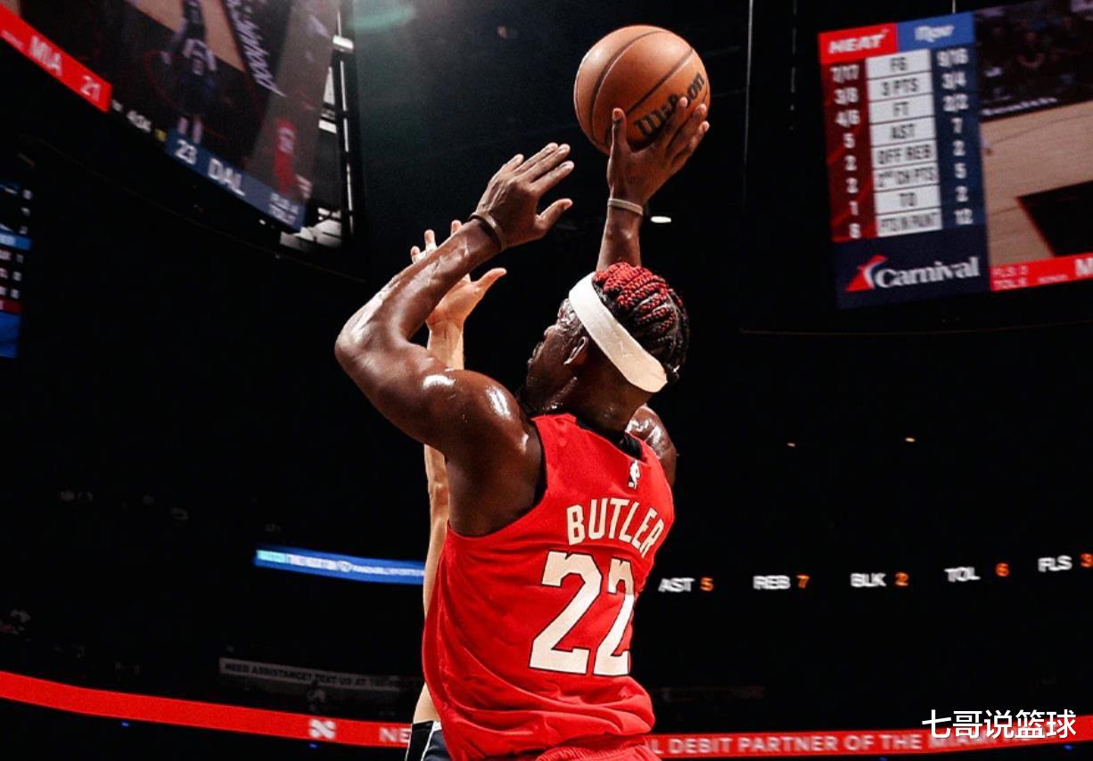 希罗在最近的四场比赛中,虽说场均可以拿到21分5.5个篮板4.8次助攻的数据,但是,效率实在是太低了,命中率:37,8%+30%。刚刚伤愈归队的巴特勒,面对76人队和独行侠队,分别砍下了30分10个篮板5次助攻,33分9个篮板6次助攻,并且,十分的高效(投篮命中率超过了66%),冲击禁区也做的非常好(场均站上罚球线14.5次)。
