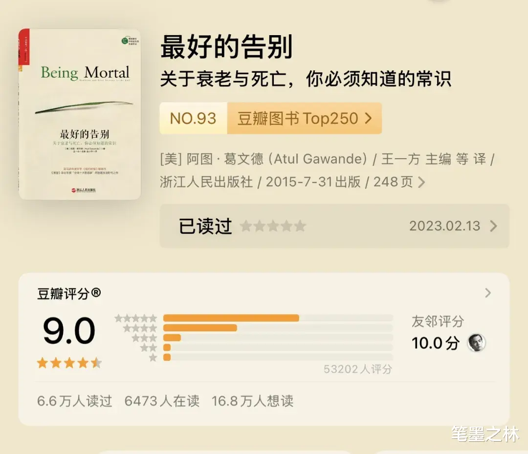 作者选择了常人往往不愿面对的话题——衰老与死亡,梳理了美国社会养老的方方面面和发展历程,以及医学界对末期病人的不当处置。书中不只讲述了死亡和医药的局限,也揭示了如何自主、快乐、拥有尊严地活到生命的终点。书中对“善终服务”“辅助生活”“生前预嘱”等一系列作者推崇的理念,都穿插在故事中作出了详尽的说明,相信会给老龄化日益加剧的中国社会以启迪。