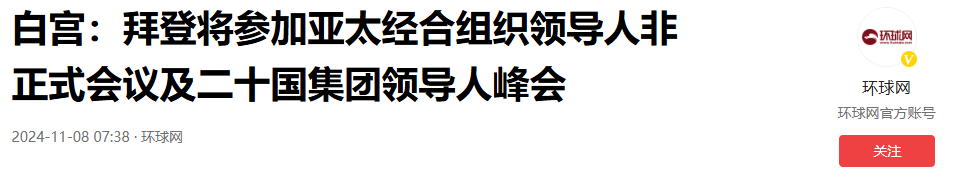 《白宫:拜登将参加亚太经合组织领导人非正式会议及二十国集团领导人峰会》——环球网