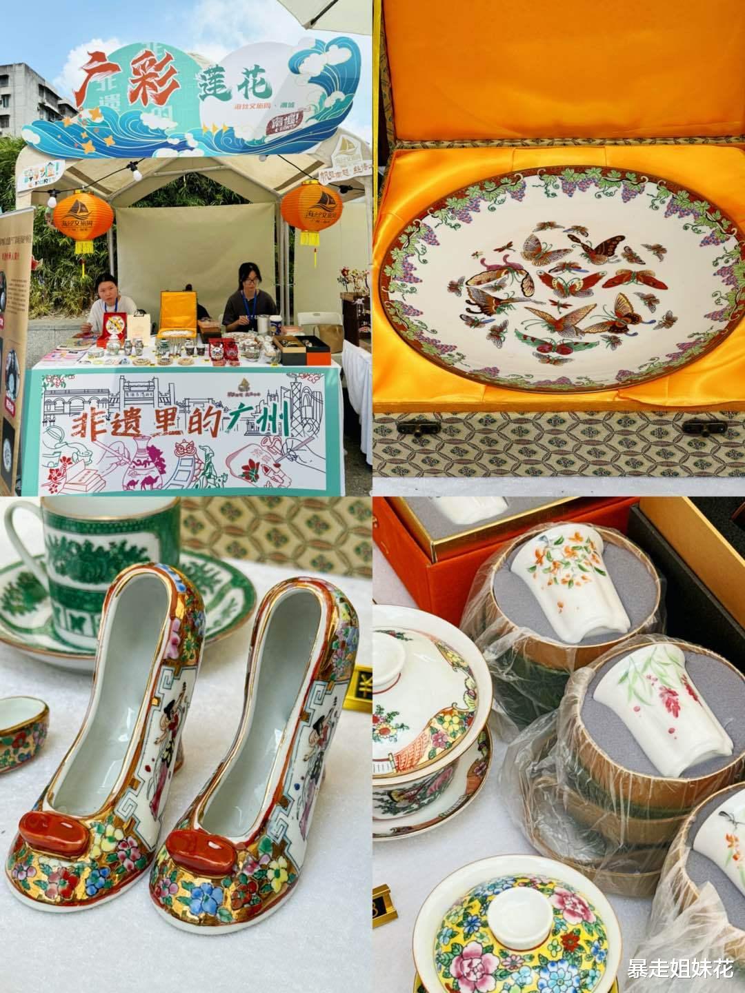 除此之外,在海丝·潮墟手作市集不仅有吃喝玩乐的本土品牌,以及国家级非遗代表性项目,广绣、广州彩瓷、曾氏榄雕等都非常值得一看,还能体验到具有悠久历史的岭南飞针疗法!