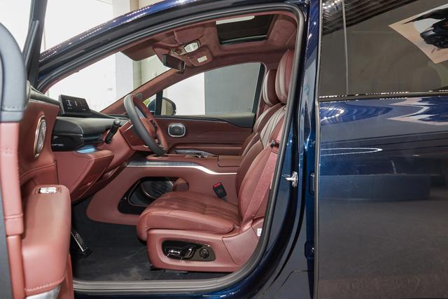 内饰部分,昊铂HL配备了17.3英寸的3K高清中控屏,27英寸的HUD抬头显示以及全液晶仪表。除此之外,新车还搭载了高通骁龙8295P芯片、双50W无线快充、渐变氛围灯等,整个内饰简洁而又不失豪华。