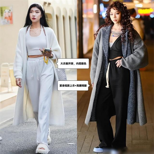 其实如果你的身材有一些微胖,直接穿短打底裤和紧身裤的确容易暴露我们的身材缺陷。你可以选择一条宽松的阔腿裤,搭配一件宽松的大衣,展现出一种随性又不失时尚感的风格。阔腿裤的长度和宽度也非常关键,它们需要与大衣的长度和宽度相互匹配,才能够打造出最佳的效果。