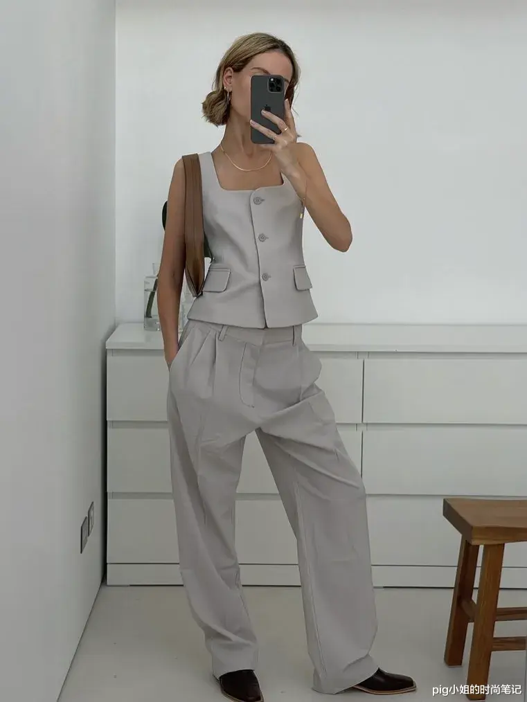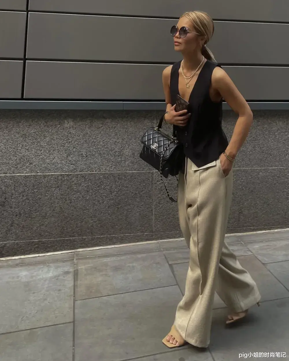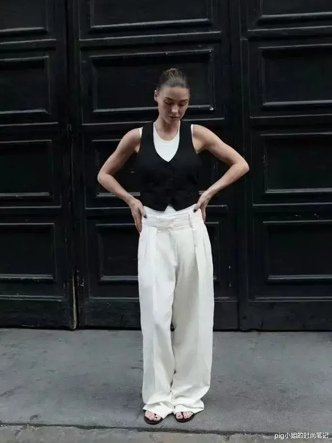 马甲与阔腿裤的组合,简约而不简单,它们在低调中透露出不凡的品位,是对时尚态度的一种优雅诠释。