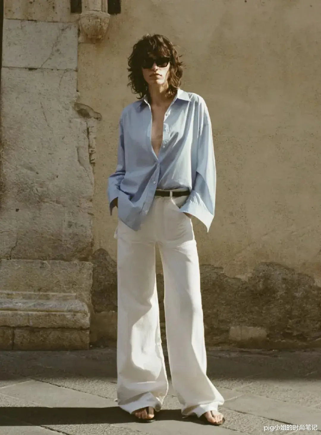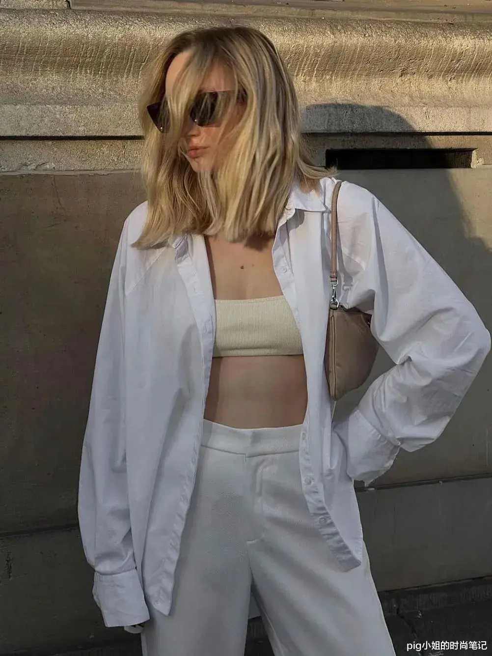 衬衫下摆,一侧轻轻塞入,这简单的动作,不仅凸显了腰线,更是一种随性而精致的生活态度的体现。