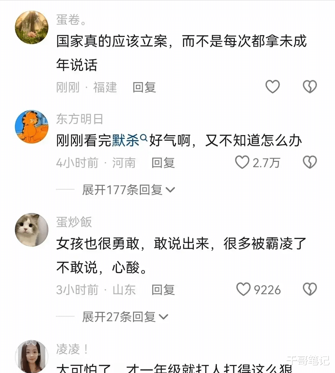 于是,事情的复杂性便浮出水面。根据法律咨询的结果,施暴者由于年纪尚小,未满14岁,因此无法被追责。这样的法律框架让人感到无奈,面对暴力所造成的心理创伤与身体伤害,法律竟然无力于保护无辜的孩子。难道我们所期待的正义,竟然在这样一个问题上显得如此苍白无力?