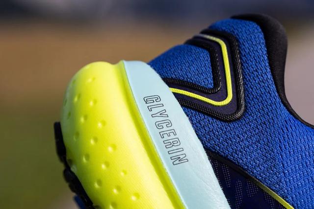 2.甘油21的目测中底厚度远超40mm,但实际的官方数据仅为28mm,数据差来自于中底的侧墙构造。侧墙设计在brooks的跑鞋设计上被普遍使用,但多用在足跟处。甘油21采用了全新的分段式缓冲系统,为跑者提供流畅脚感的同时,在前掌趾骨两侧和中足内外两侧适当地增加了侧墙设计。承托式中底结构搭配加宽的中底构型为跑者提供了更加稳定的动态体验。